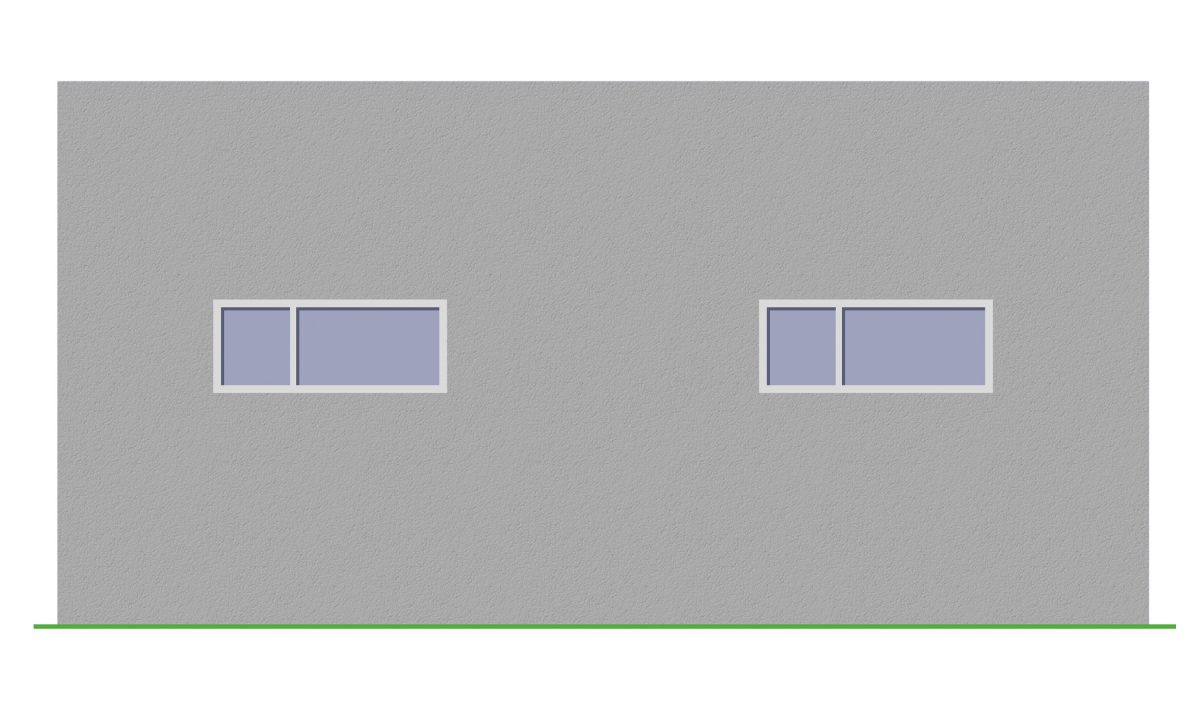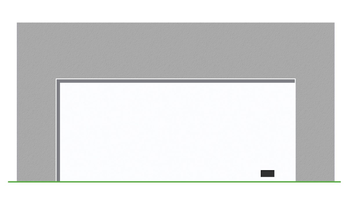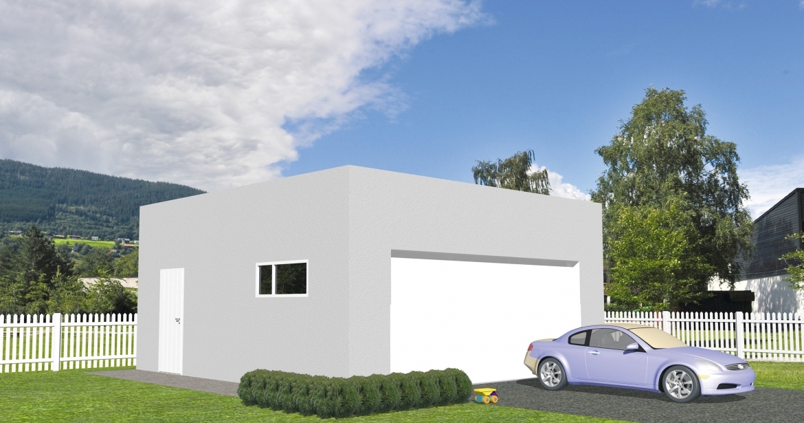 Minimalistisk dobbelgarasje med enkel port. Garasjen er i mur og har flatt tak. Kan også bygges i tre.