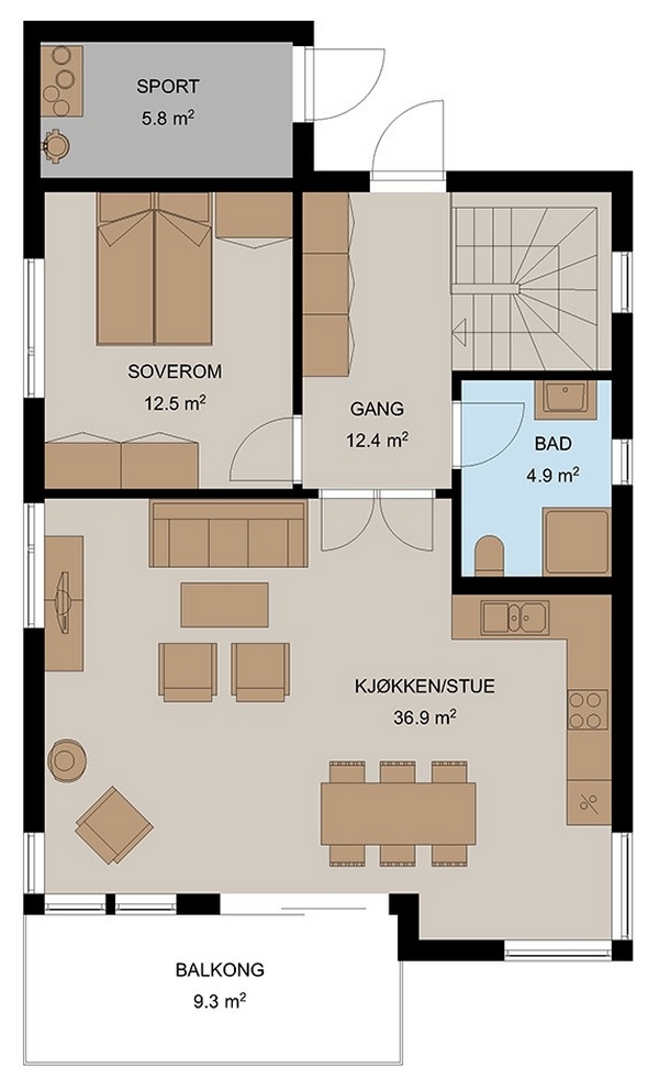 Ida er en kompakt funkisinspirert bolig med meget effektiv planløsning.