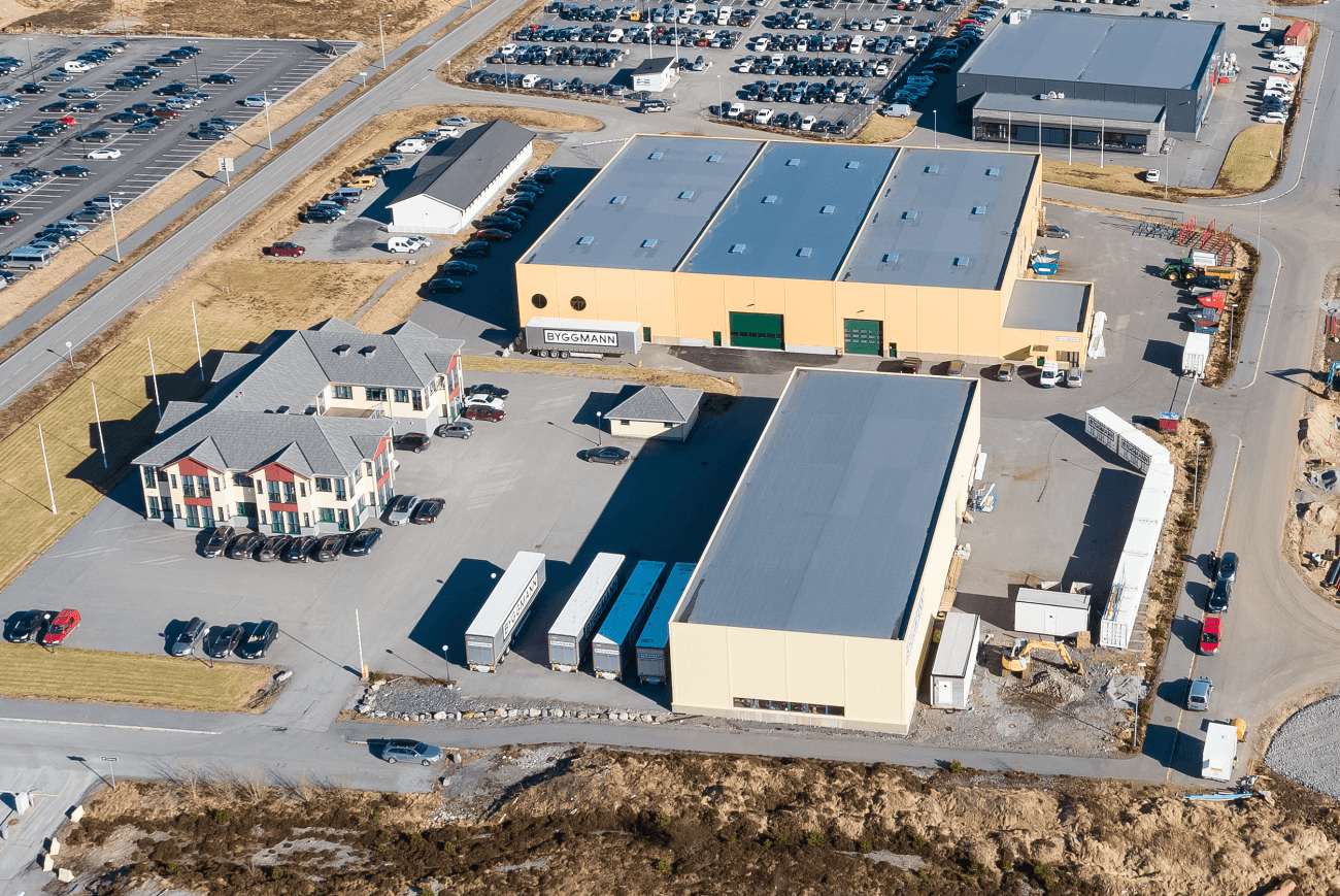 Vårt hovedkontor ligger på Vigra utenfor Ålesund. Her sitter det 30 engasjerte ansatte som jobber innen data og it, markedsføring, prosjektering, byggevare, produksjon, montering, drift og regnskap. Her har vi også vår egen husfabrikk der vi kan produsere inntil 300 boliger i året.
